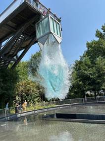 Würfel, welcher sich nach unten öffnete, als er gefüllt war und