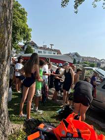 vereinten Kräften die Kanus wieder zurück auf die Anhänger gehievt