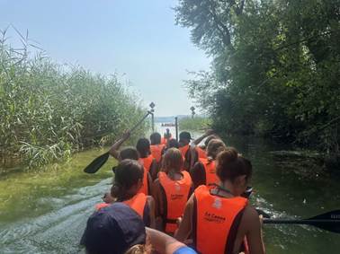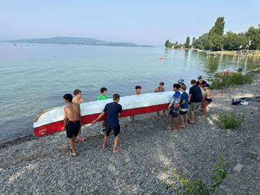erklärten. Danach ging es direkt mit den grossen Kanus ins Wasser.